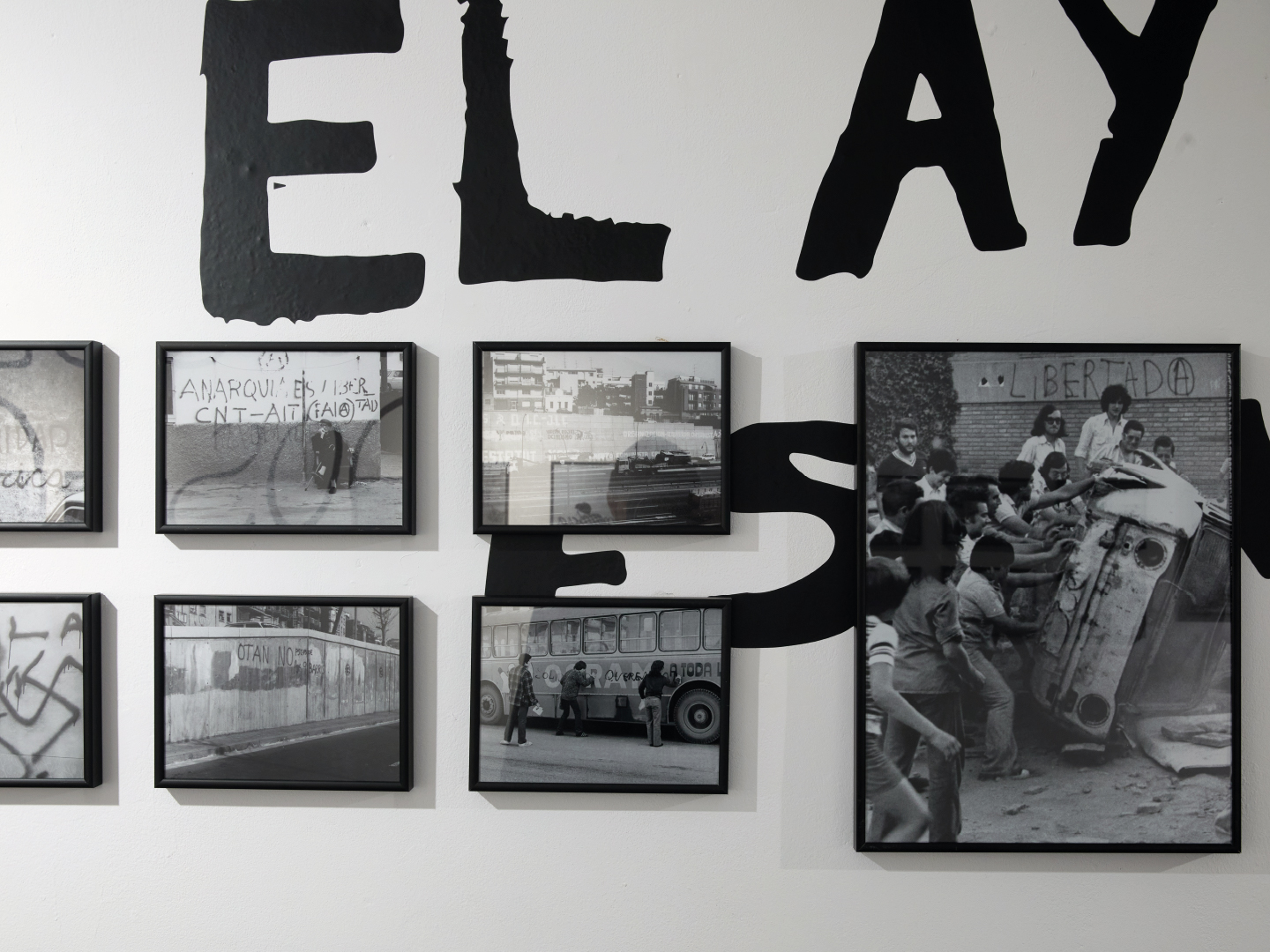 Quienes no pusieron mala cara a las pintadas son los fotógrafos que se presentan en esta pequeña exposición. Gracias a su trabajo, todas esas letras dispersas nos ofrecen una visión de los ciudadanos que, en momentos de necesidad de expresión, encontraron en las paredes y las sábanas unas aliadas firmes. Con la fotografía se alarga la vida de lo que solo estaba destinado a ser visto en su contexto, y que, por ello, después del repaso de la cámara, pierde su significado original. La pintada descontextualizada se recicla en nuevas ideas y, aunque use las mismas palabras, las combinaciones son infinitas.
